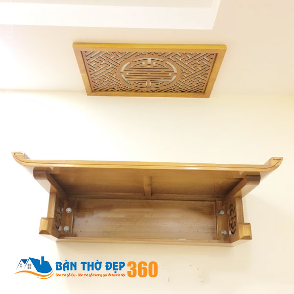 Bàn thờ treo tường cho nhà chung cư được làm từ 100% gỗ mít. Đây cũng chính là yếu tố khiến bàn thờ treo tường cho nhà chung cưtrở nên vô cùng đặc biệt trong hàng trăm mẫu bàn thờ của Bàn Thờ Đẹp 360.