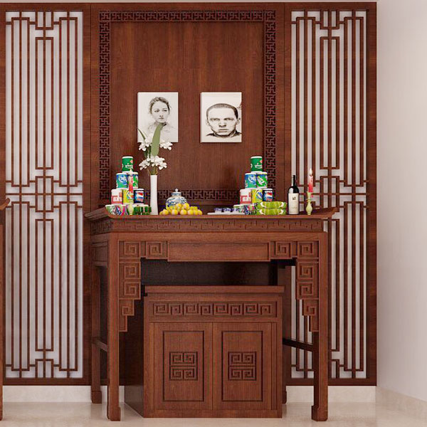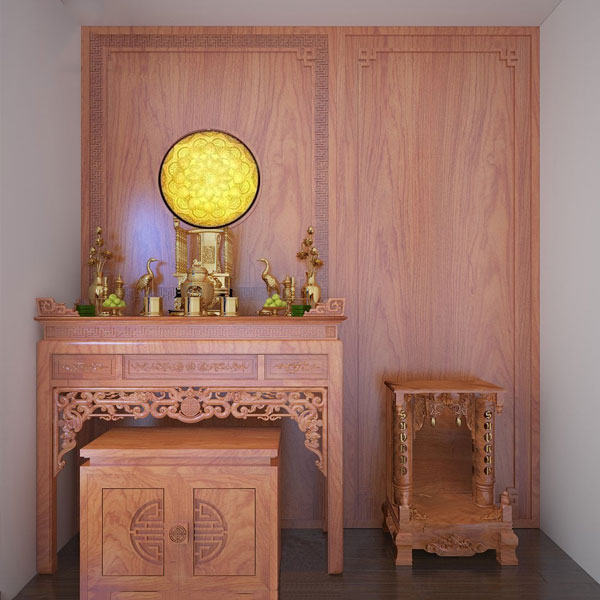 Bàn thờ đứng gia tiên gỗ sồi hiện đại