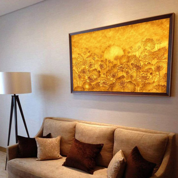#Giá tranh trúc chỉ hoa sen